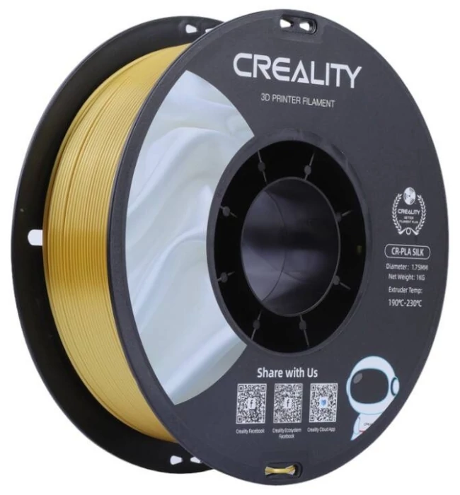 A Creality CR-Silk filament elegáns, fémes csillogással rendelkezik, így szemet gyönyörködtető, és tökéletes figurák, dekorációk vagy akár ékszerek nyomtatásához. Emellett lenyűgöző tartóssággal és a legtöbb Creality nyomtatóval való kompatibilitással is büszkélkedhet, ráadásul tartós, mégis környezetbarát anyagokból készül.